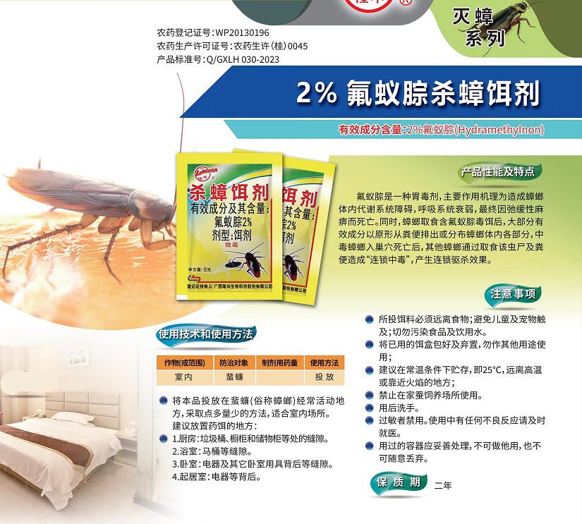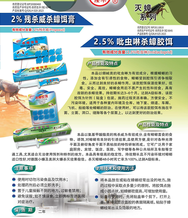 2%残杀威杀蟑饵膏、2.5%吡虫啉杀蟑胶饵
